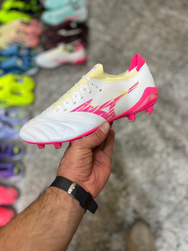 کتونی فوتبال میزانو سفید صورتی سایز 40 تا 45 MIZUNO
