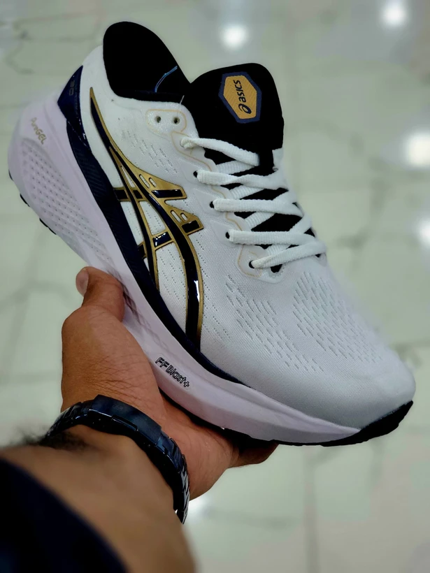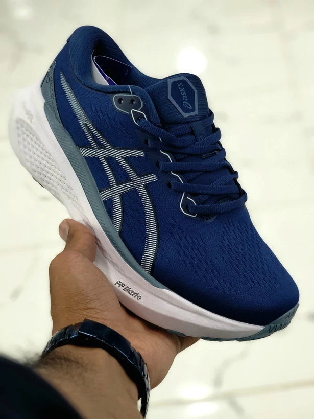 کتونی اسپرت ژل کایانو 31 اسیکس آبی سرمه ای طلایی سایز ۴۰ تا ۴۵ Asics Gel Kayano 3۱
