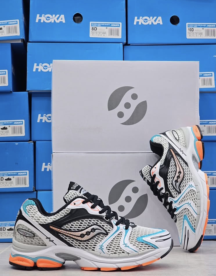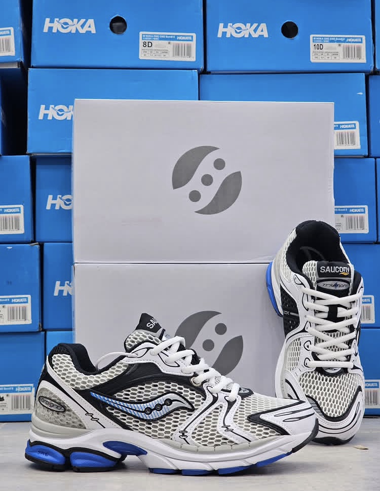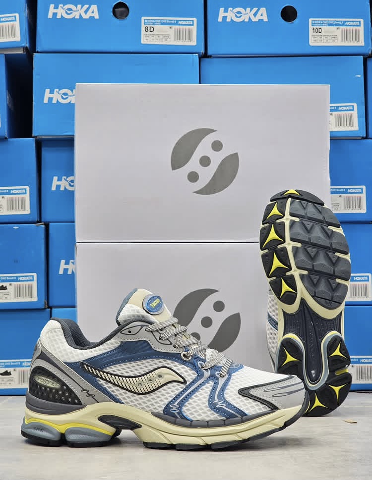 خرید کتونی ساکونی پرو گرید تریموف 4 سفید طوسی سرمه ای سایز 40 تا 45 Saucony Progrid Triumph 4