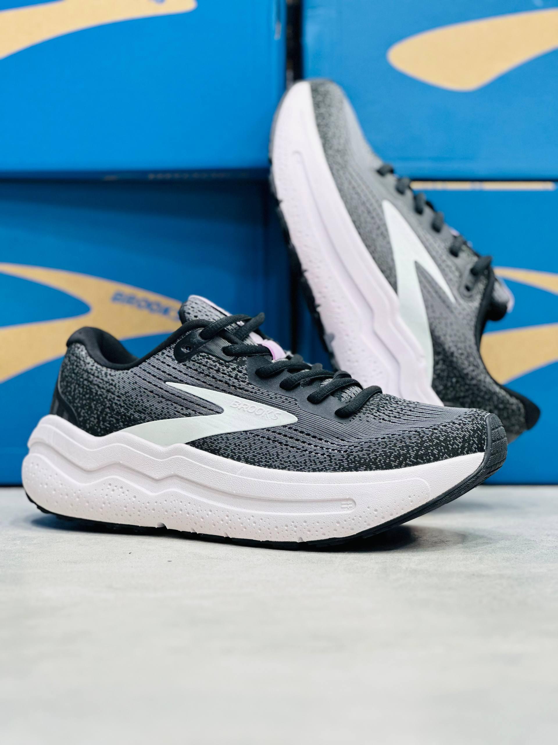 کتونی بروکس گاست مکس ۲ طوسی تیره زرد سفید سایز 40 تا 45 Brooks Ghost Max 2