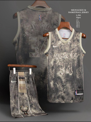 ست جرزی بسکتبالی نایک میلواکی 34 آنتتوکمپو خاکی سایز L تا NIKE MILWAUKEE 34 5XL