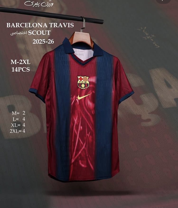 کیت تیشرت فوتبالی پلیری نایک بارسلونا تراویس اسکات 2025/26 سایز M تا NIKE BARCELONA 2025/26 2XL