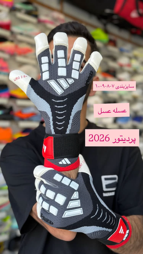 دستکش دروازه بانی آدیداس پردیتور طوسی مشکی سفید سایز7 تا 10 ADIDAS PREDATOR