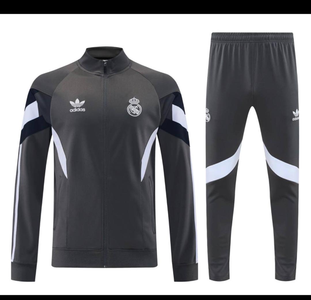 ست کاپشن و شلوار ورزشی آدیداس رئال مادرید طوسی مشکی سایز S تاAdidas Real Madrid 2XL