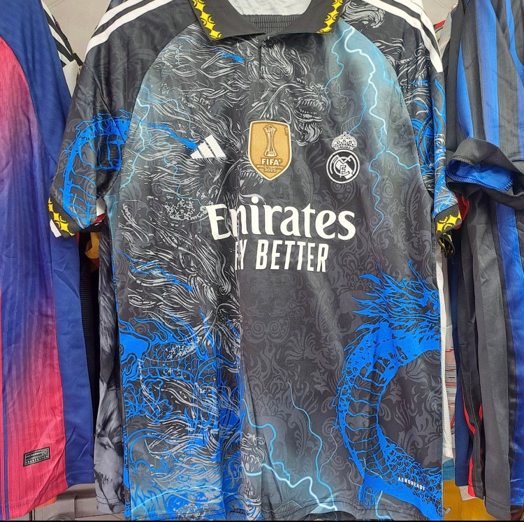 تیشرت کیت آدیداس رئال مادرید کانسپت دراگون (اژدها) مشکی آبی سایز S تاADIDAS REAL MADRID DRAGON 2XL