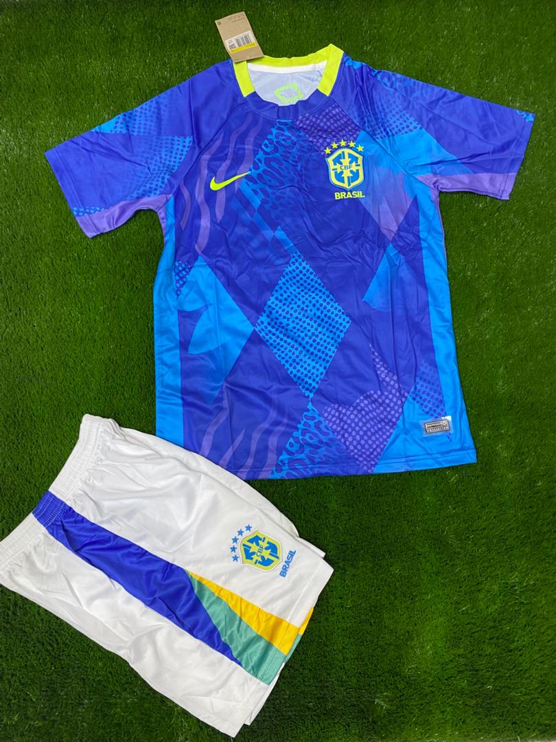 کیت پیراهن (تیشرت فوتبالی) نایک برزیل آبی سایز S تا 2XL