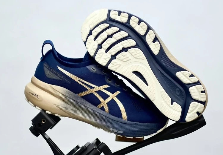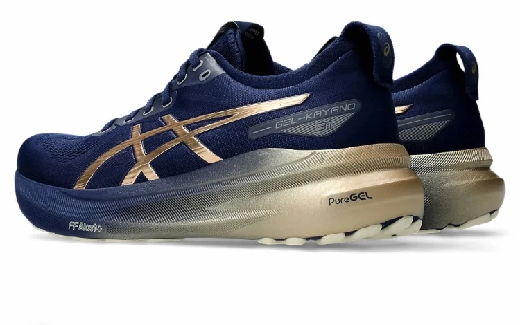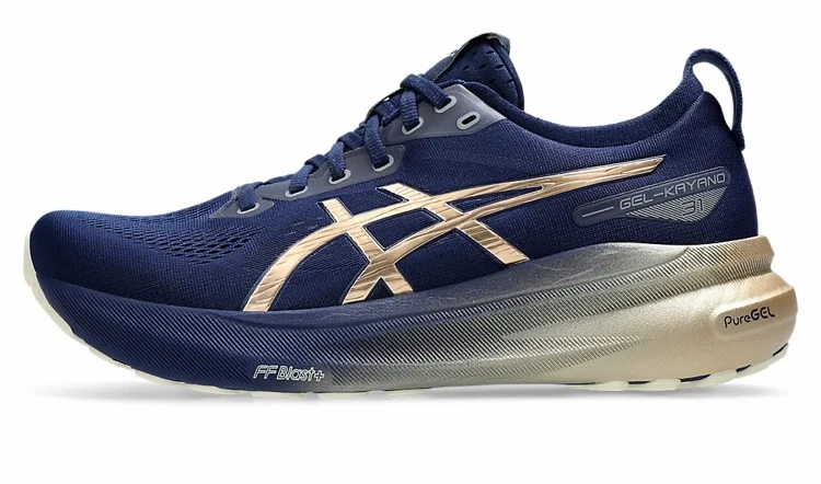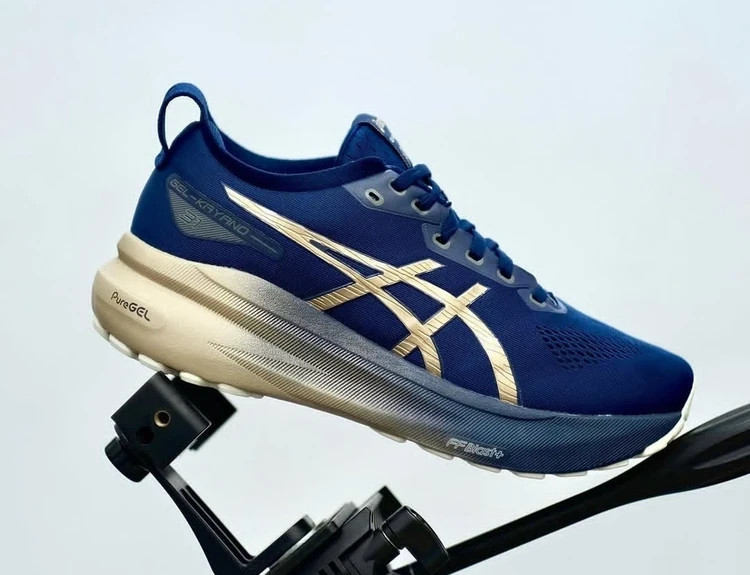 کتونی اسپرت ژل کایانو 31 اسیکس آبی سرمه ای طلایی سایز ۴۰ تا ۴۵ Asics Gel Kayano 3۱