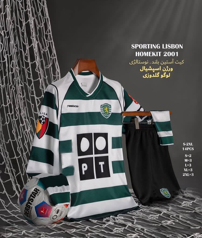 کیت تیشرت فوتبالی پلیری ریبوک اسپورتینگ لیسبون سایز S تا REEBOK SPORTING LISBON 2XL